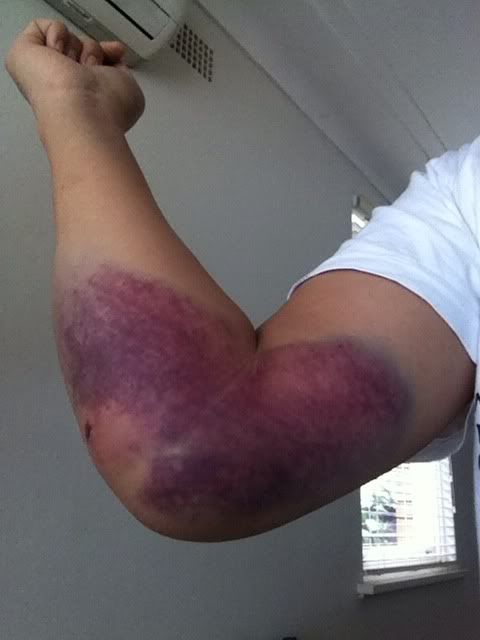 But this is my elbow after stacking it in 2012, drove back to Sydney on the Monday too (in a manual) … take care on those back lanes fellas