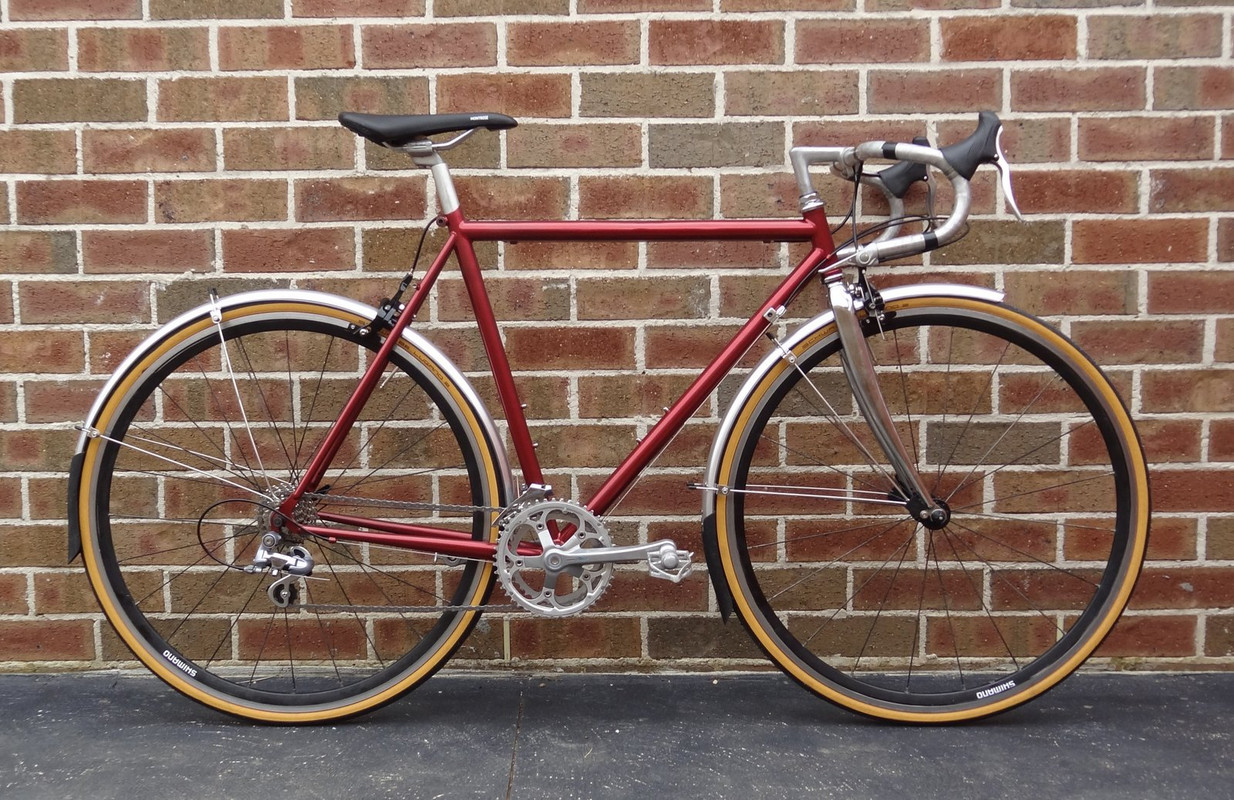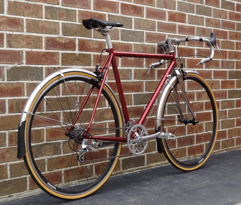 Plans are Shimergo, old Tiagra or 105 groupset, guards. Maybe a Wald basket?