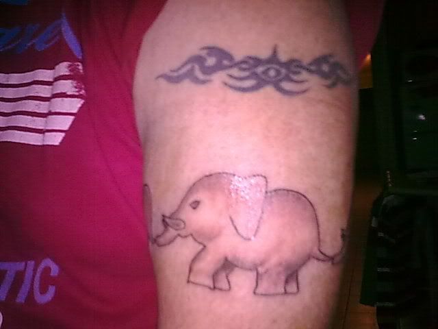 I wouldn’t be too worried about being laughed out of a shop. I wanted to get a tattoo to represent my kids, so I got a chain of three elephants as an armband that me eldest drew. As you can imagine, they aren’t exactly the most fierce looking bull elephants on earth!